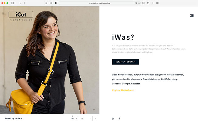 In Bad Honnef there is a cool hairdresser: iCut Trendfrisuren. The employess know exactly what is trendy and are ready to show you. The redesign of the website needed to reflect this special feeling. Passion and inspitation were the keywords.